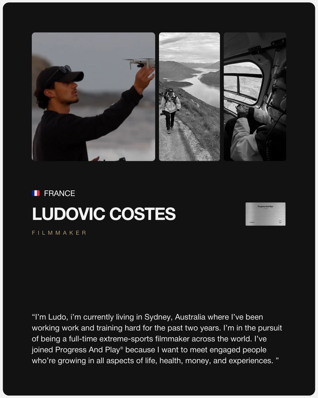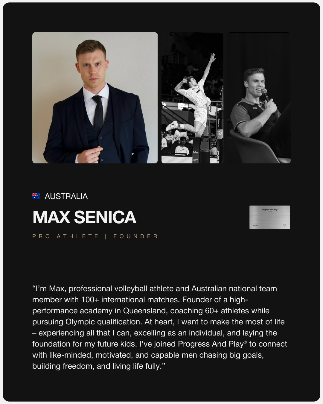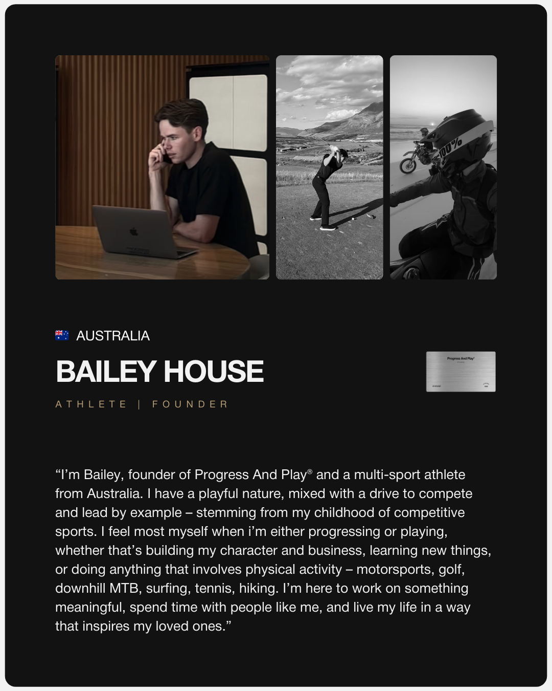 FIRST 50 MEMBERS | APPLICATION ONLYThe first release of the Progress And Play® Pass – the exclusive Pass for Ambitious and Sporty men to be more connected, alive, capable, and fully themselves.