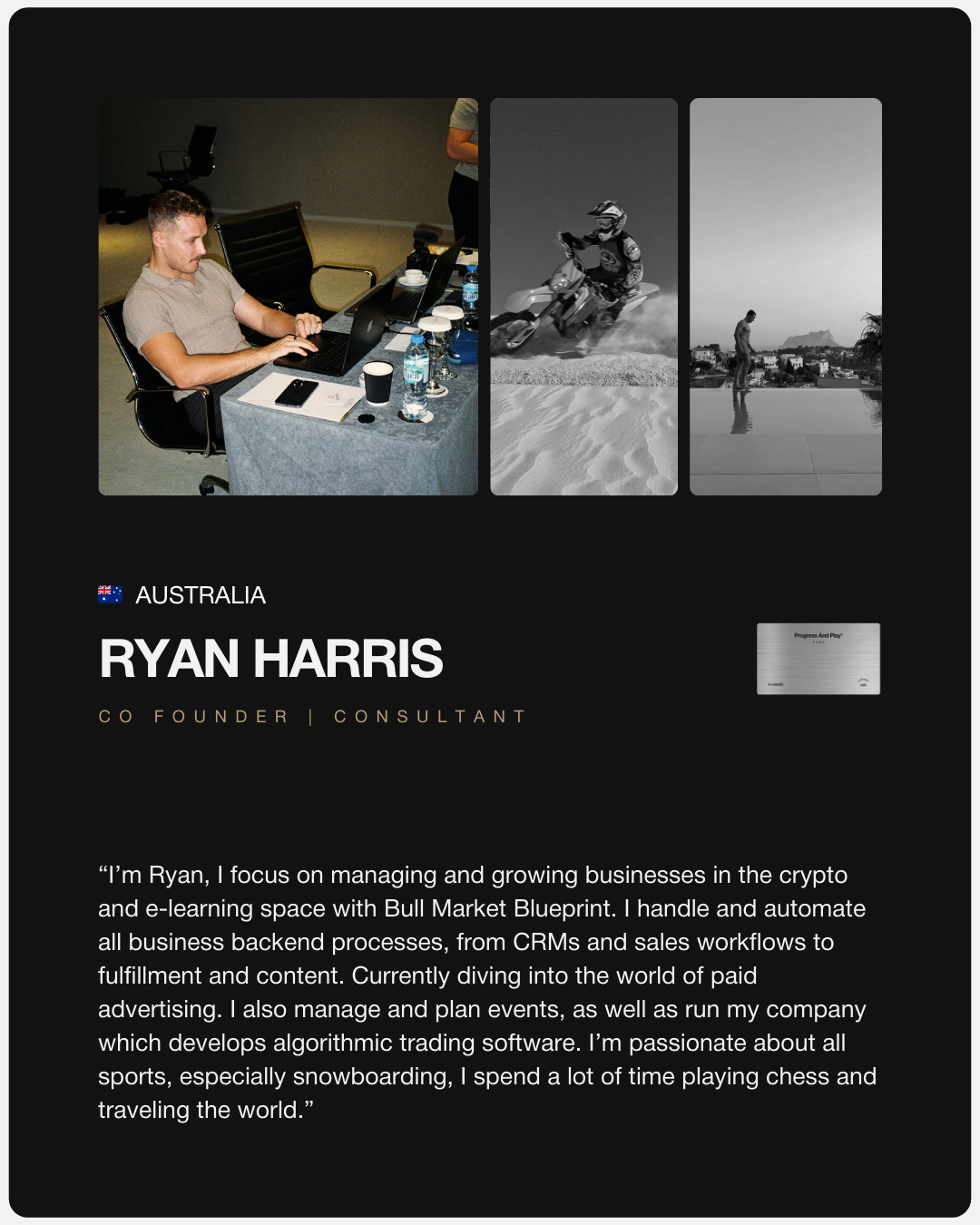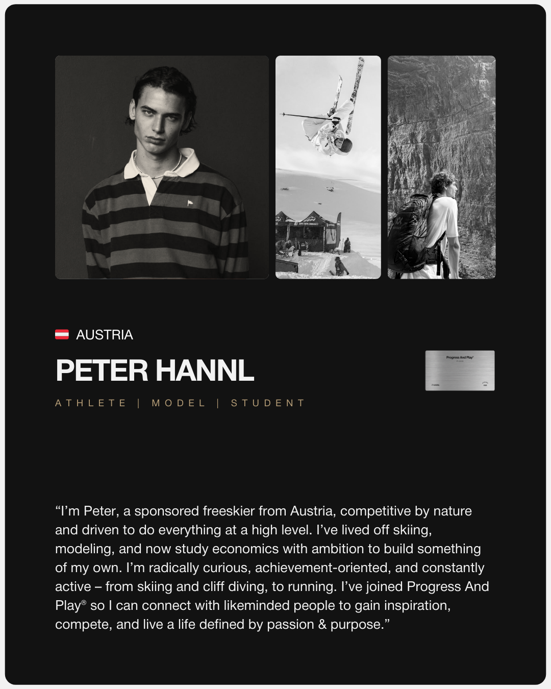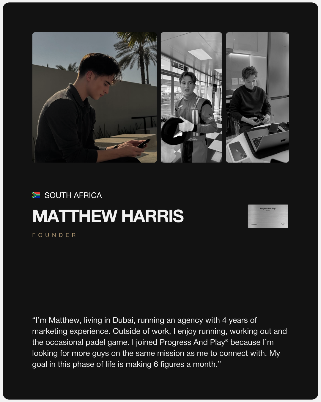 FIRST 50 MEMBERS | APPLICATION ONLYThe first release of the Progress And Play® Pass – the exclusive Pass for Ambitious and Sporty men to be more connected, alive, capable, and fully themselves.
