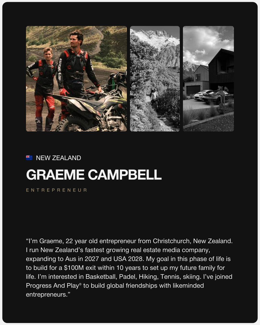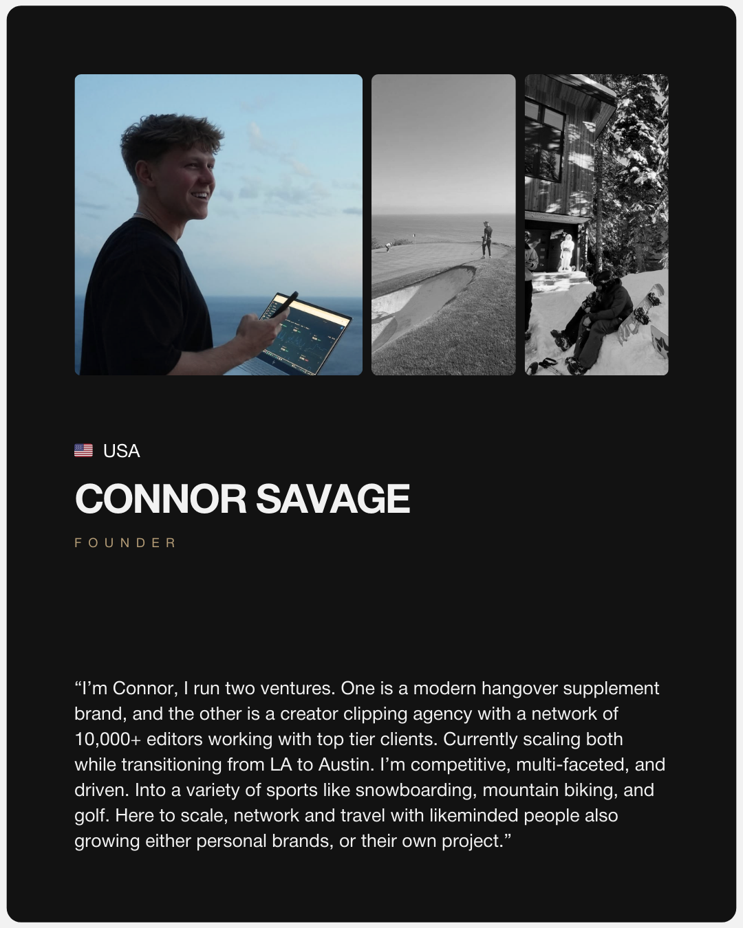“While building my first business and seeing some amazing growth in my life... I couldn’t help but feel like I was missing the right kind of people around me, and the kind of experiences that actually aligned with how I wanted to live.