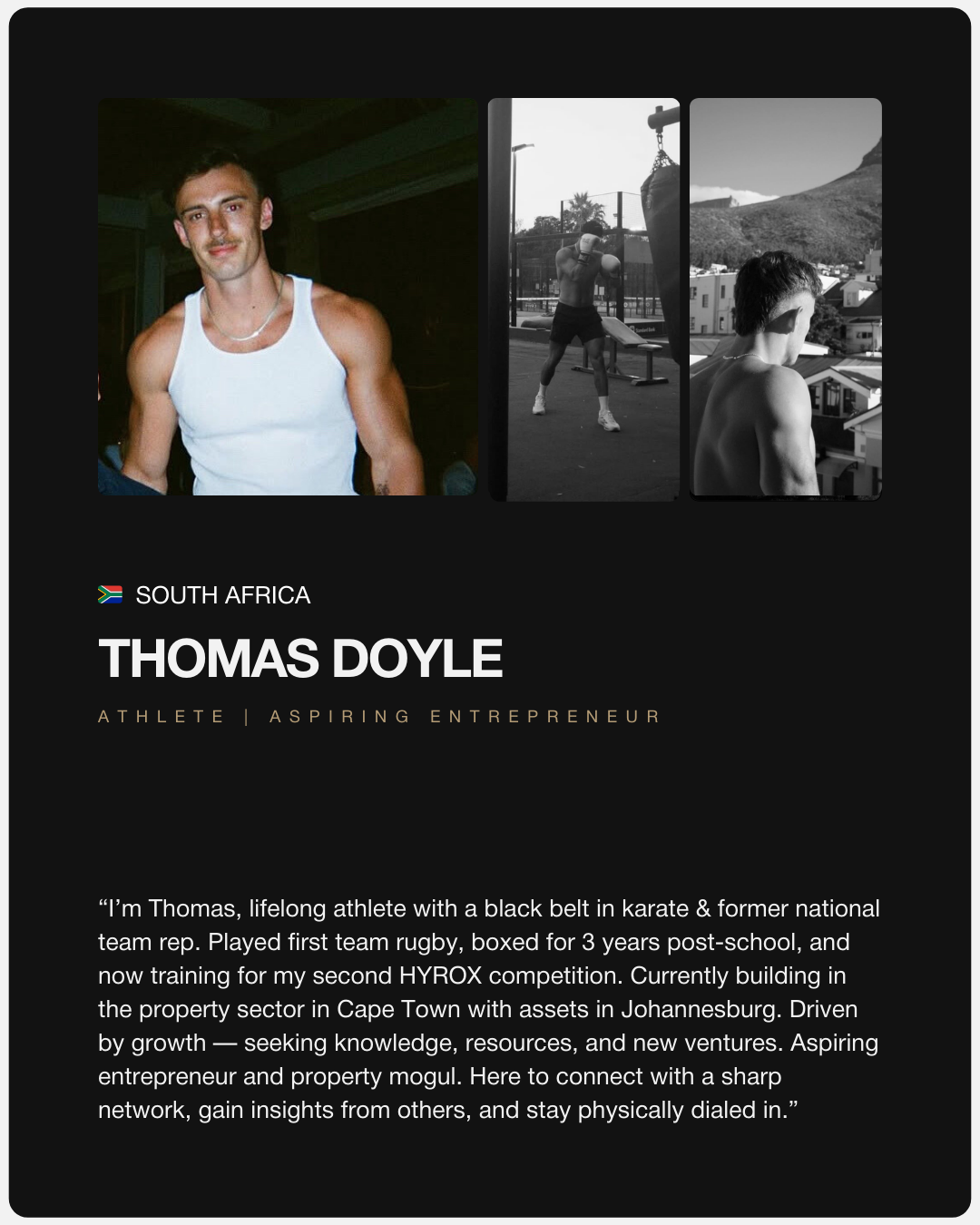 This is for Ambitious and Sporty men: Men who’re driven to set a high standard in every area of life + active in sports that demand real skill.